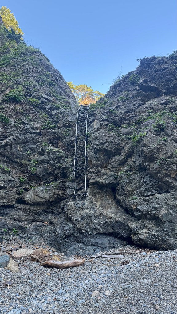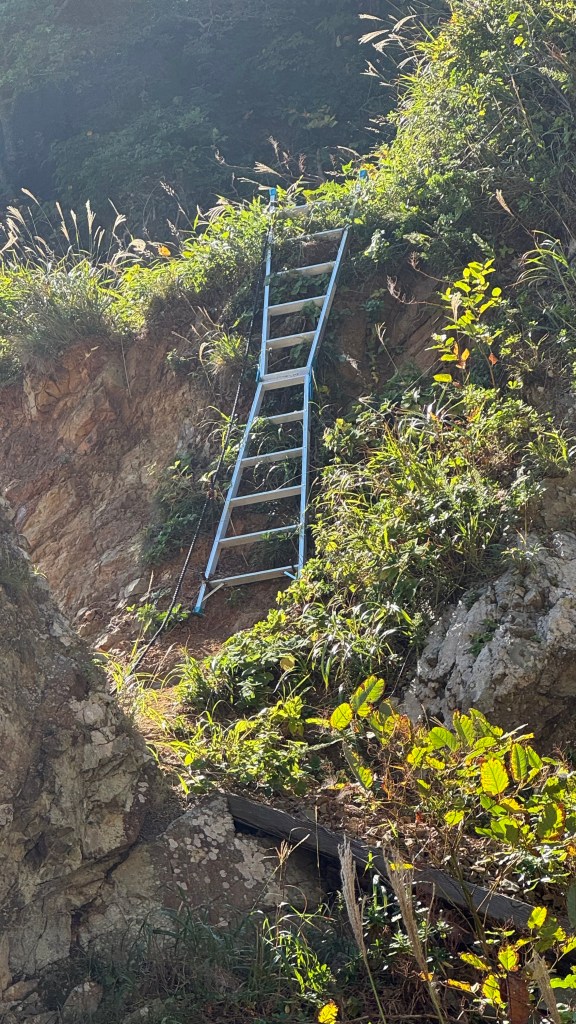 Japan’s mountains are not gentle hills. They are volcanic and just go up from zero to 170m (as an example) within less than a km. No slopes, no meandering up the mountain or cliff. Straight up (if you know Lost in Translation, just remember the scene in the hospital). Or down, depending from which side you approach. The solution are steps, or ladders.