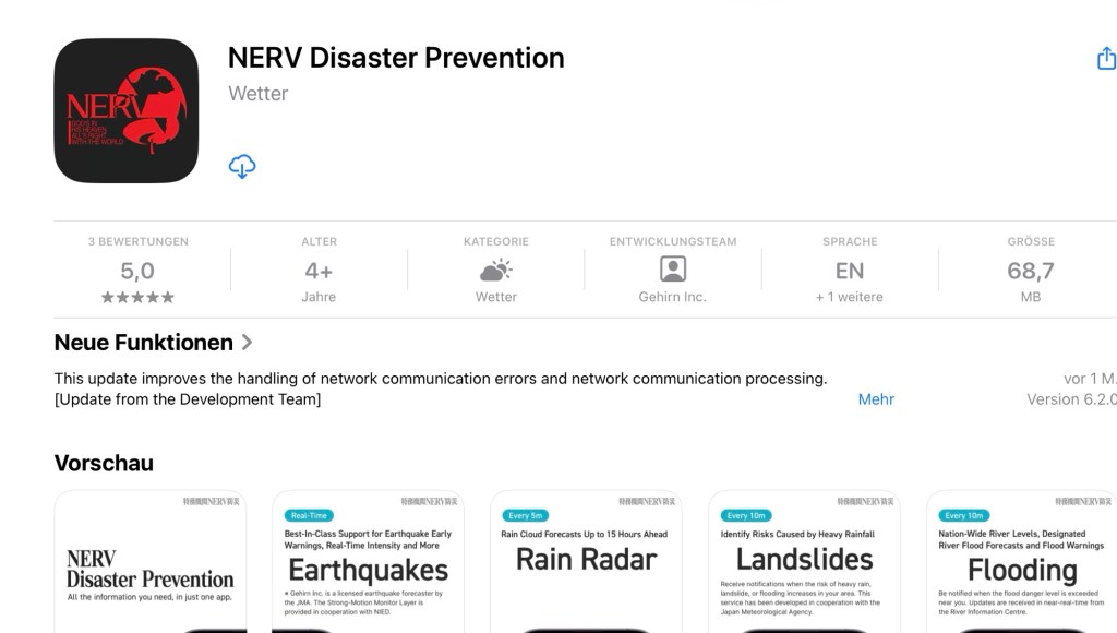 Japan is used to be the play ball of nature. Earthquakes, tsunamis, heavy rains, taifuns you name it. It is important to be aware of what is going on, especially when you do not speak Japanese.The app NERV is especially important if you are in areas that can be hit by a tsunami. It will warn you immediately, no matter whether it is on silent or not. But it also gives you weather forecasts and a rain monitor which makes it really valuable.